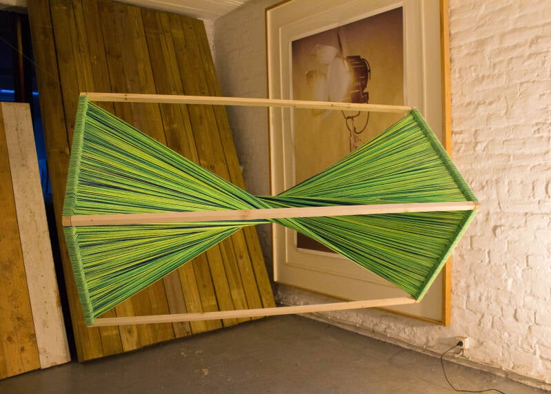 Avec un cadre en bois fabriqué sur mesure, les fils croisés viennent ici chercher l'illusion d'optique, la sensation de profondeur, dont le seul but est de finir par faire mal aux yeux si on en observe le centre trop longuement. L'idée est que le visiteur se retrouve absorbé dans la sensation d'un puits sans fond. On peut y voir la symbolique du temps, de l'infini, du passé, du présent et du futur.