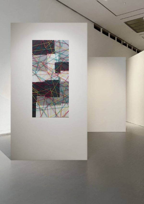 Collage, peinture gouache sur chassis, tissage de laine à l'aiguille