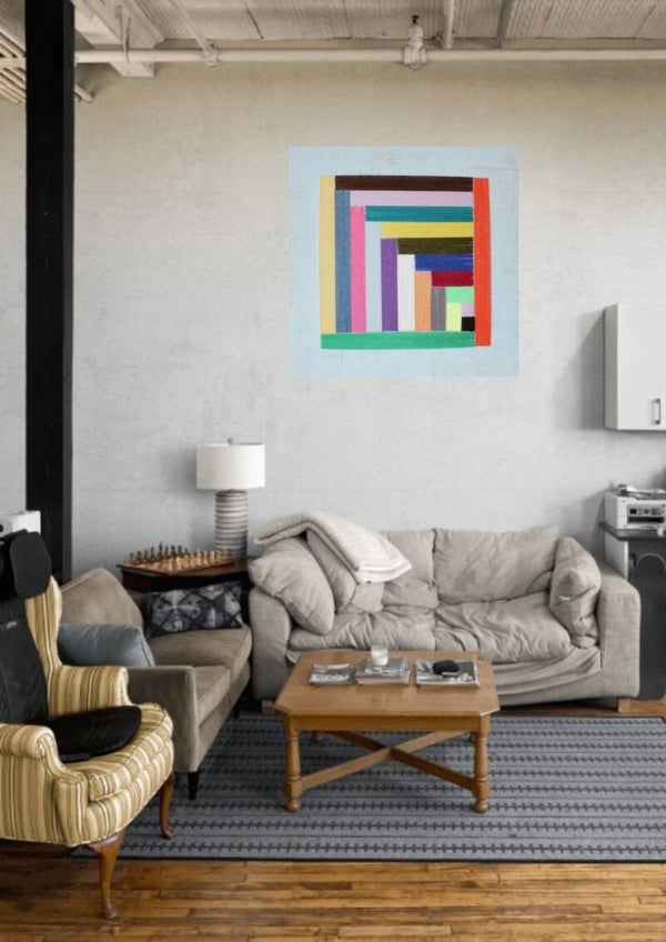 Collage, peinture gouache sur toile non vernie, tissage de laine à l'aiguille.