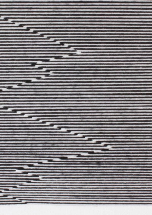 Tissage de laine à l'aiguille sur châssis brut, non vernis, travail d'opposition asymétrique / symétrique.