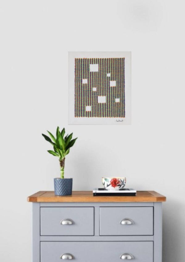Tissage croisé à l'aiguille, laine sur châssis brut non vernis.