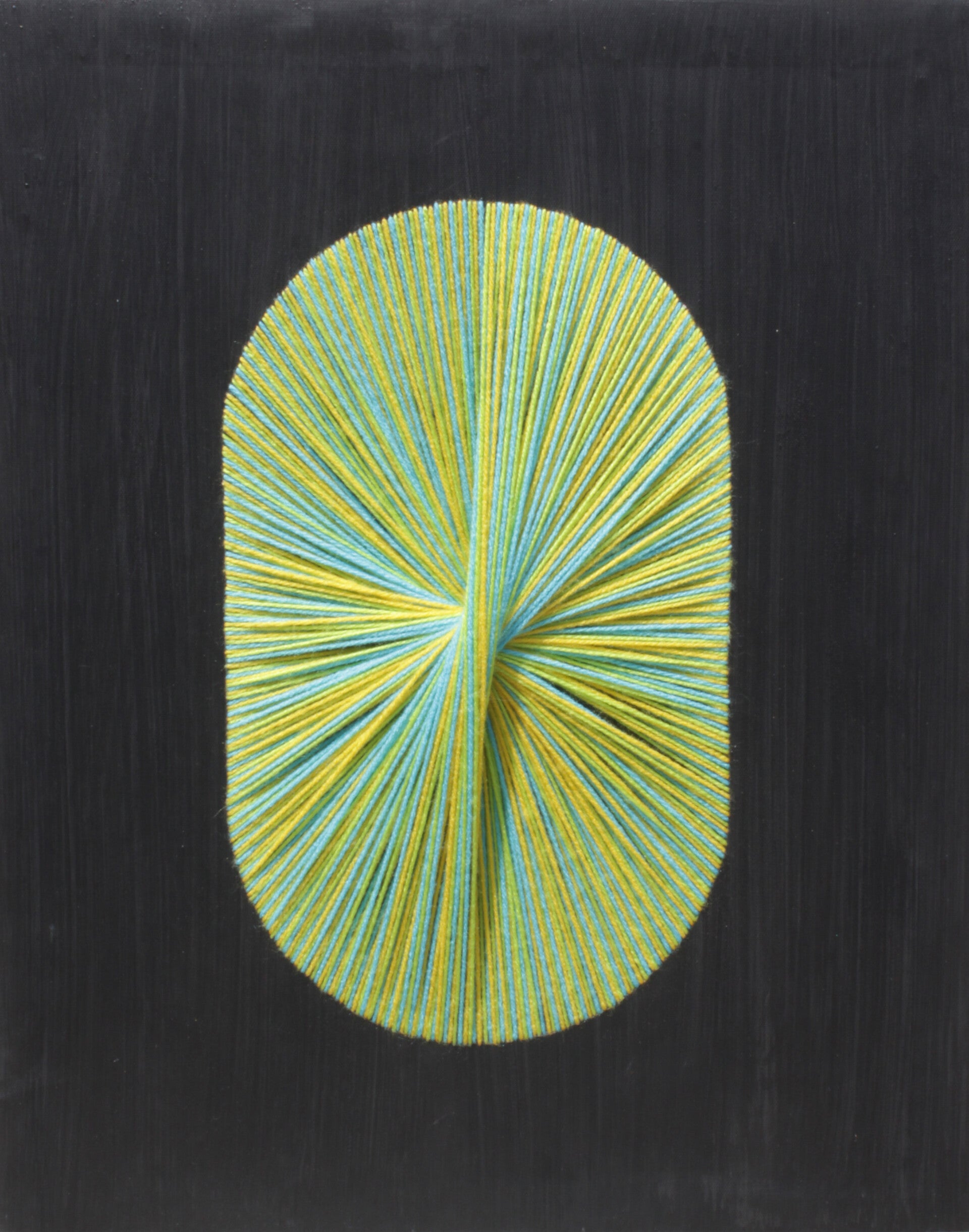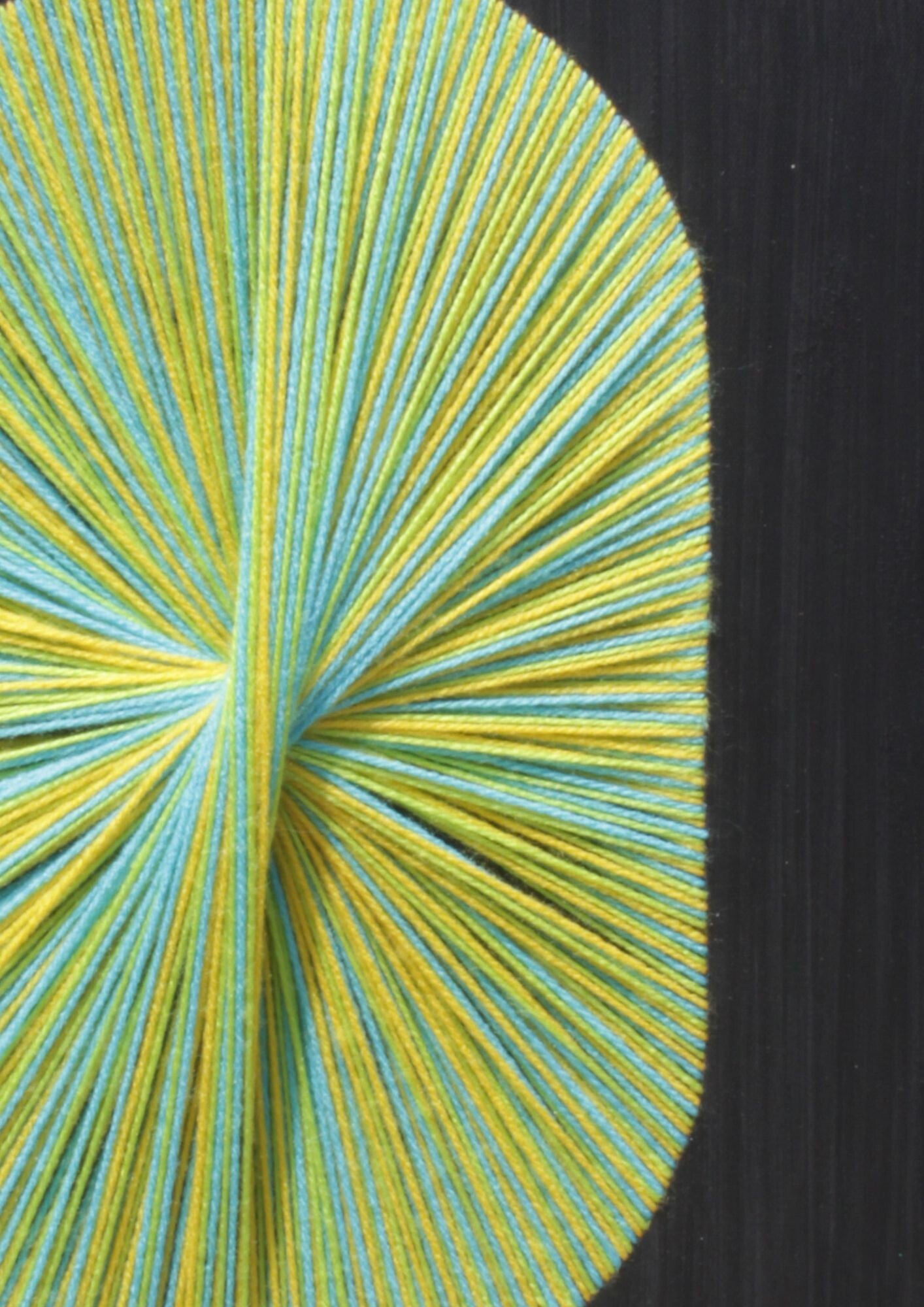 Tissage de laine à l'aiguille sur châssis, peinture gouache, vernis.
