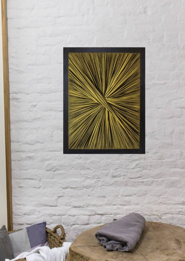 Tissage de laine à l'aiguille, peinture gouache, toile vernie. Tissage de superposition.