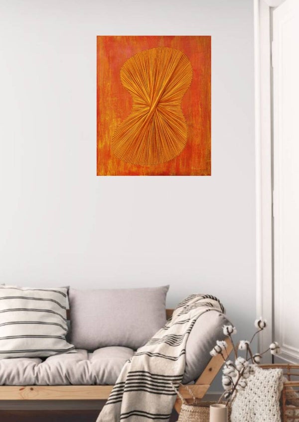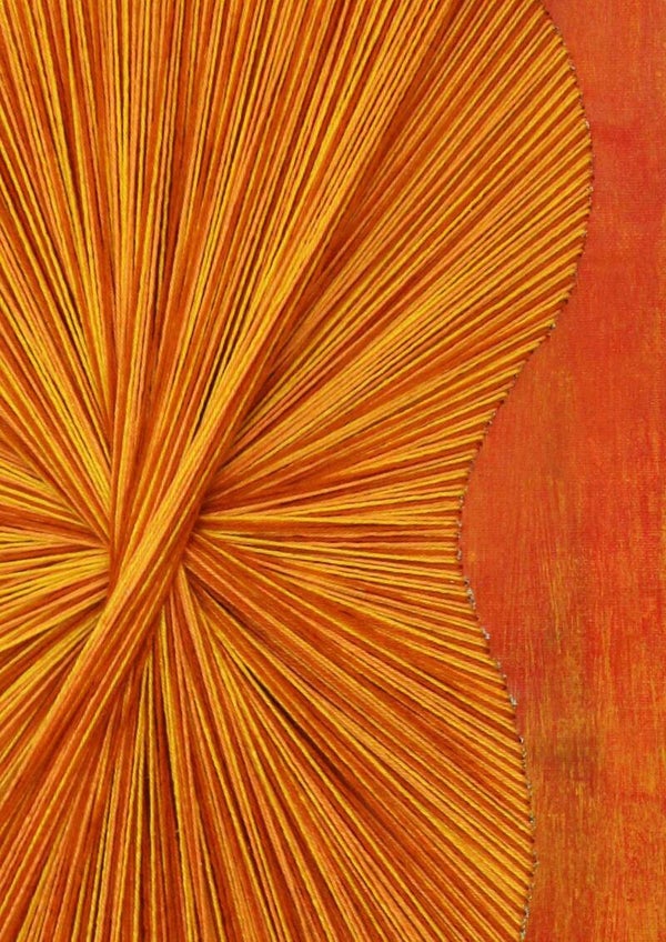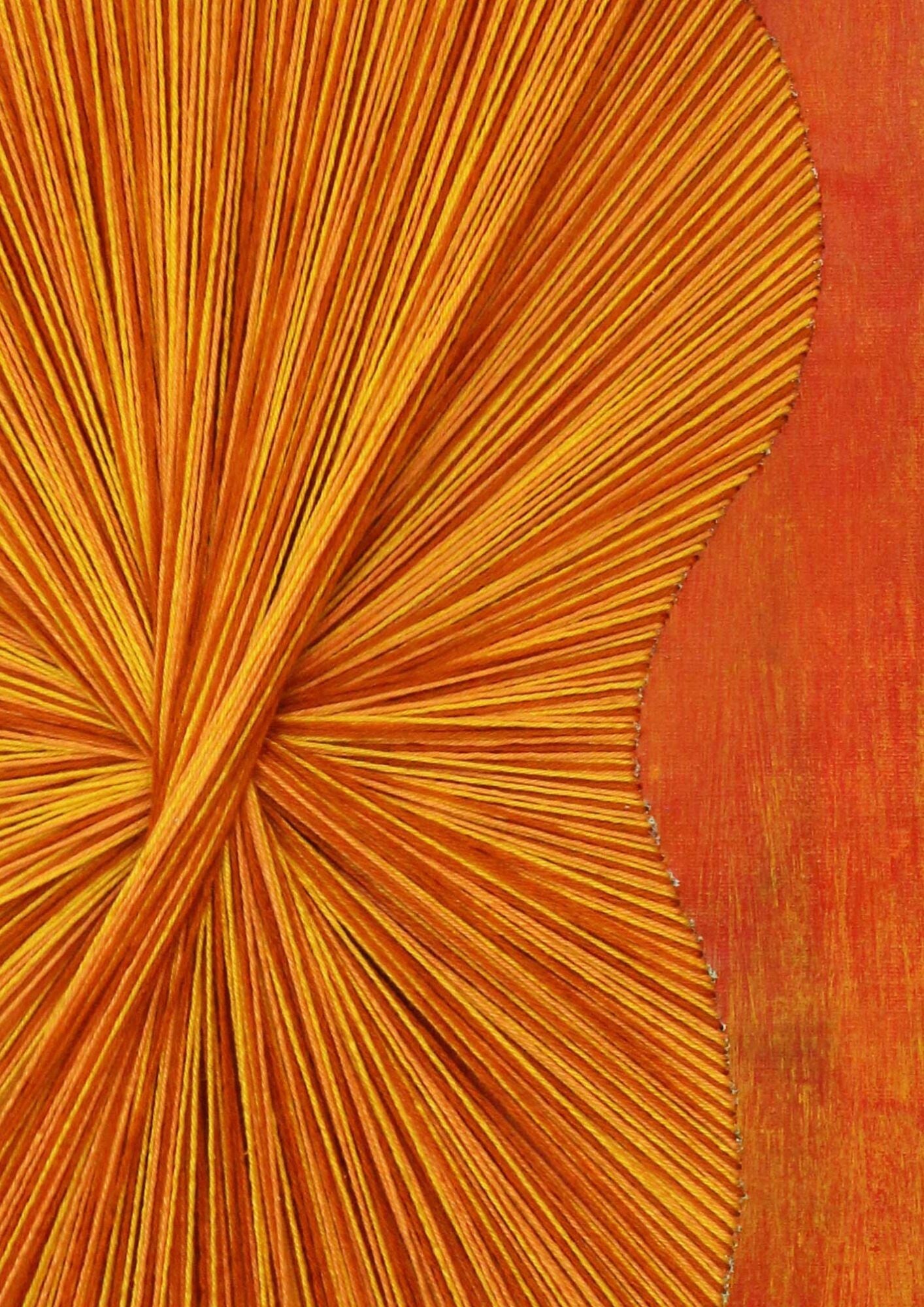 Tissage de laine à l'aiguille sur châssis entoilé, peinture gouache, vernis, brosse.